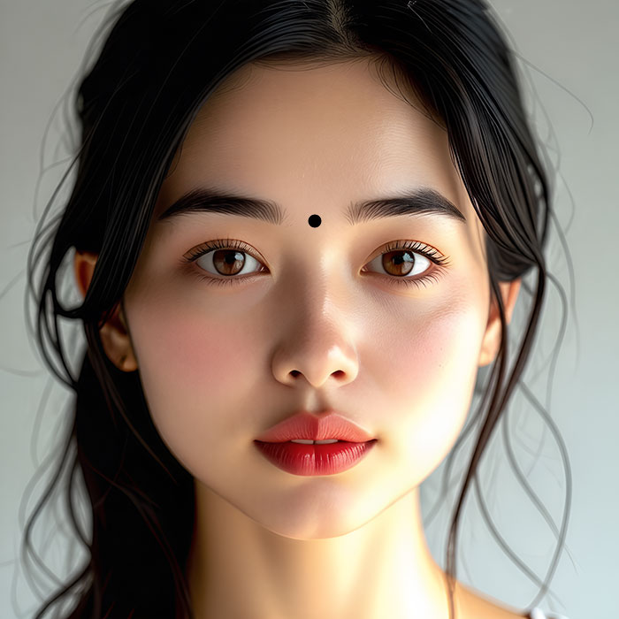 이마의 정 중앙은 관록궁이라 하여, 직위와 지위, 공명과 관련된 곳입니다. 이곳에 점이 있는 분은 매우 똑똑하며, 특히 뛰어난 통찰력을 가지고 있어요. 정확한 판단을 통해 올바른 결정을 내리곤 한답니다.