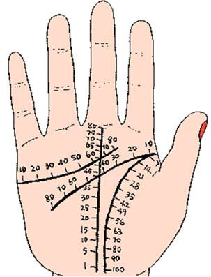 이로써 생명선에 대한 내용은 대체로 마무리되었습니다. 많은 분들이 생명선의 특정 위치가 어떤 나이를 나타내는지 궁금해할 것입니다. 이제 주요 손금의 유년기부터 백세까지의 흐름을 다룬 아래의 도표를 살펴봅니다.