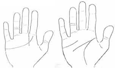 중지 아래의 토성 둔부까지만 이어지는 경우, 이 사람은 감정을 오래 지속하기 어려워 감정을 쉽게 쏟아내지 않는 경향이 있습니다.
