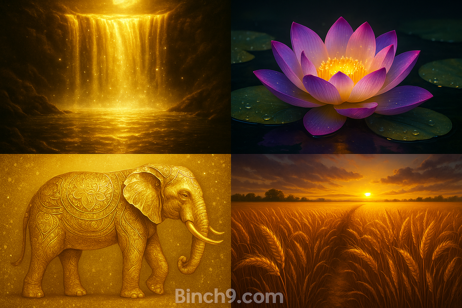 - 풍요의 상징: 물결, 황금, 복돼지, 연꽃, 코끼리 등은 전통적으로 풍요와 번영을 상징