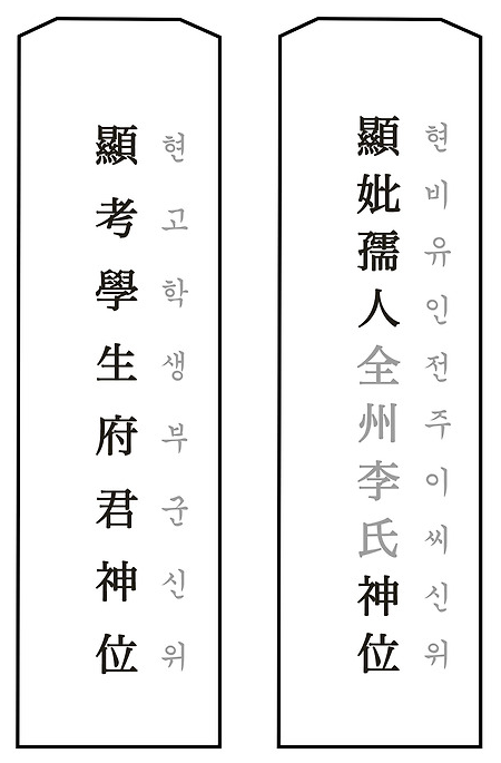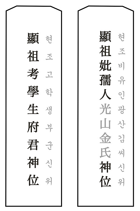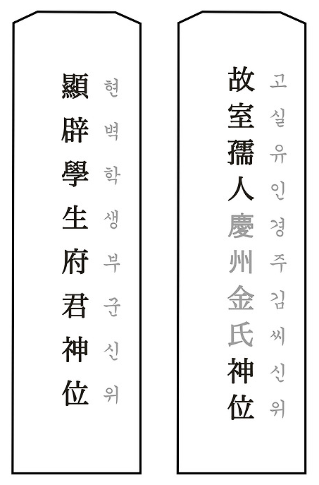 부부 공동 지방: 고학생 홍길동 정부인 김해김씨 신위