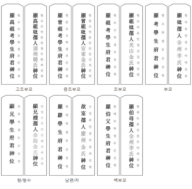 즉, 이렇게 간단히 기억하면 됩니다: 관계 → 직위 → 이름 → 신위
