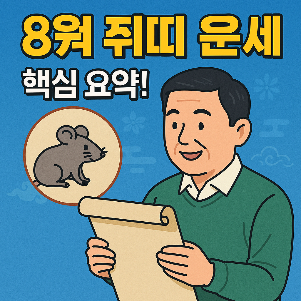 이번 글에서는 이번 달 2025년 8월 쥐띠 운세의 핵심 포인트를 금전운, 연애운, 직장운, 건강운 순으로 꼼꼼히 살펴봅니다.
